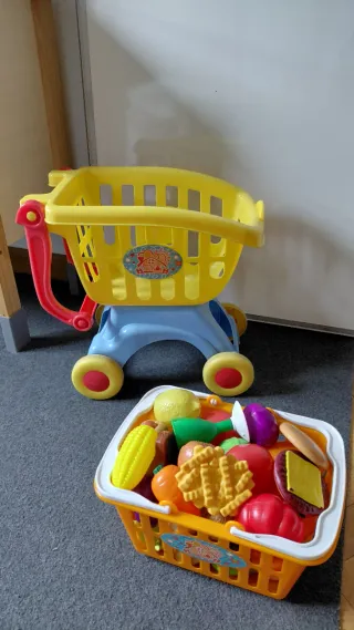 Carrito y cesta de supermercado de juguete