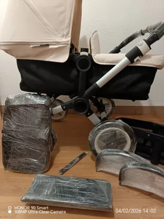 Conjunto de carrito para bebé, ideal para usar desde el nacimiento hasta los 4 años. Incluye capazo y bolso. - Color verde militar. - Capazo. - Bolso a juego. Me enamoré del carrito en cuanto lo vi pero… vivo en un 3 sin ascensor y no le estamos dando uso, lo hemos usado 5 veces o menos. Esta totalmente nuevo y tiene un montón de complementos. Dentro del bolso está la mosquitera, un cacharro para para la bebida y unas especies de manoplas para el frío.