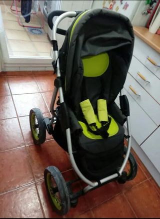 Se vende carrito de bebé todoterreno, en buen estado. Es ligero y fácil de manejar. Es una pasada para andar por caminos o calles de pueblos. Las ruedas son hinchables. Para reclinar la silla hay que apretar en el regulador de la zona del asiento porque se ha roto una pieza del tirador.