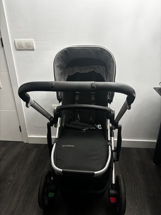 Carrito de bebé UpaBaby Cruz V2 en color gris. Un cochecito versátil y elegante. - Chasis de aluminio ligero. - Capota extensible con protección solar UPF 50+. - Cesta de compras de gran capacidad. - Ruedas todoterreno para mayor maniobrabilidad. - Mosquiteras. (Silla y capazo) - Protectores de agua. (Silla y capazo) - Embalaje original.