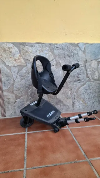 Vendo plataforma para carrito de bebé de la marca Hamax. Está en buen estado, con algunos signos normales de uso. - Se adapta a la mayoría de carritos. - Incluye dos reposapiés. - Fácil de instalar y quitar. - Ideal para niños pequeños que se cansan de caminar.
