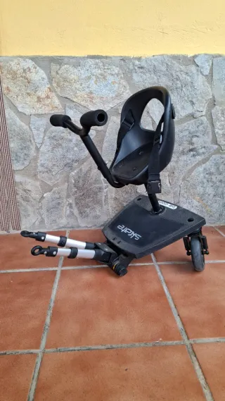 Accesorio para carrito de bebé Skate. Permite que un niño mayor viaje de pie. - Plataforma antideslizante. - Asiento integrado. - Manillar para apoyo.