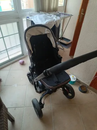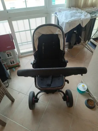 Carrito de bebé en buen estado. - Color negro y marrón. - Ruedas delanteras giratorias. - Asiento acolchado.