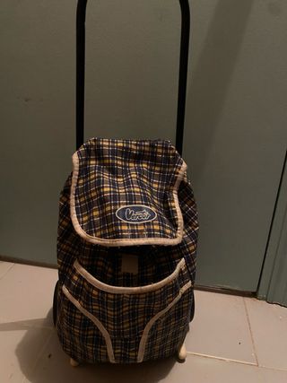 Carrito de la compra con un diseño a cuadros, con bolsillo para meter al muñeco - Estampado a cuadros en tonos azul marino y amarillo. - Detalle de ribete blanco. - Logo de la marca Vercor en la parte superior.