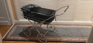 Carrito de bebé Silver Cross en muy buen estado, ideal para coleccionistas o para darle un toque vintage a tu hogar. - Diseño clásico y elegante. - Estructura metálica. - Capota de tela. - Ruedas de radios.