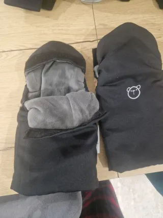 Manoplas de tejido gris para proteger las manos del frío mientras paseas con el carrito. - Cierre con cremallera. - Forro interior negro.