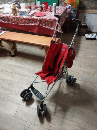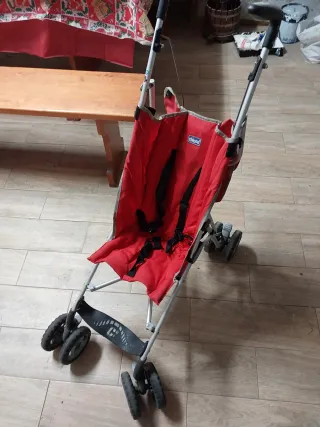 Carrito de paseo de la marca Chicco en color rojo. Se encuentra en buen estado. - Estructura ligera y plegable. - Asiento acolchado. - Arnés de seguridad.