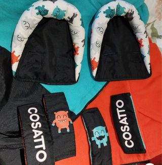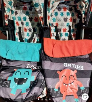 Carrito gemelar de la marca Cosatto con un divertido diseño de monstruos. - Incluye fundas para los asientos. - Diseño interior con estampado de monstruos. - Funda azul para un asiento. - Funda naranja para el otro asiento. - Cada asiento tiene un diseño de monstruo diferente en la parte inferior.