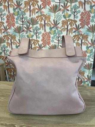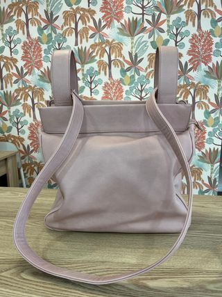 Bolso de polipiel, en color rosa liso, con asas a contraste. Ideal para colgar en carrito y silla de paseo. También incluye cinta para colgar en hombro. Superficie antimanchas e interior plastificado, de fácil limpieza. 3 bolsillos internos. Dimensiones: 35cm (alto solo bolso) - 44cm (alto incluyendo asas), 32cm (ancho), 11cm (profundidad). Producto Usado, en Muy Buen Estado. Se adjunta imágenes con el estado de uso.
