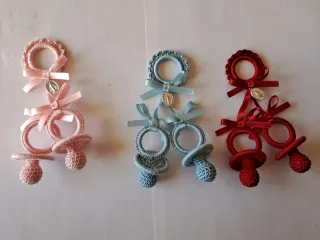 Chupetes a ganchillo para carrito de bebé y cuna.