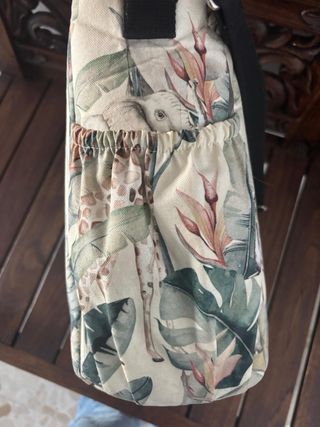 Bolso para carrito de bebé con un bonito estampado de elefantes y hojas tropicales. - Diseño exclusivo de Betribe. - Correas negras resistentes. - Compartimentos exteriores.