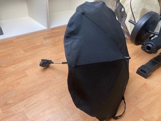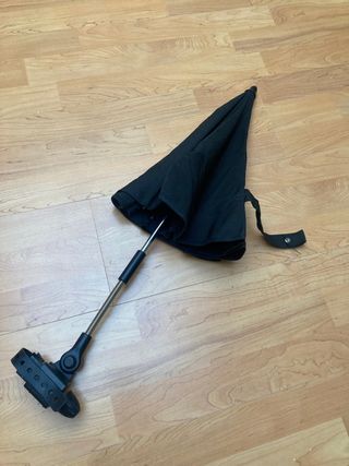Sombrilla negra para carrito de bebé. Se pliega fácilmente y se sujeta al chasis. - Color: Negro. - Material: Tela y metal.
