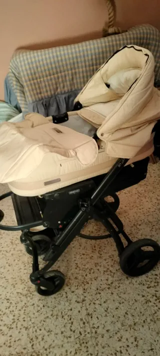 Vendo cochecito para bebé Inglesina Trilogy. - Se encuentra en excelentes condiciones: limpia, desinfectada y precintada - Con todos sus complementos, sólo el bolso costó 50€ - Regalo conjunto de sombrilla y cubre de cuadritos balnco y beige y sombrilla morada - Silla para el coche Isofix - Por sus dimensiones NO lo envío - No puedo subir más fotos al anuncio - Cualquier duda preguntar - Escucho ofertas