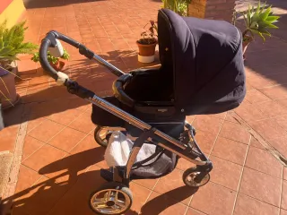 Conjunto de tres piezas para carrito de bebé.Estado impecable,edición limitada, con brillantinas con color de oro Su precio de la tienda original 1490€ Usado con mucho cuidado, muy corta temporada - Capazo espacioso. - Silla de paseo. - Bolso a juego