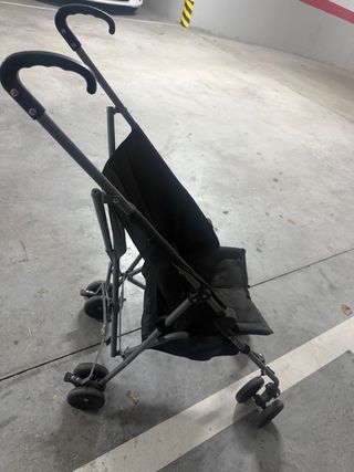 Carrito de bebé compacto y muy práctico, ideal para llevar en viajes o para el día a día. Marca delta - Diseño ligero y plegable. - Color negro. Tiene desgastes de uso y se ve en la foto que el soporte de bolsos tiene unos agujeritos