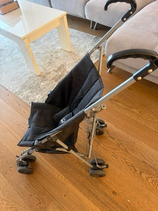 Carrito de bebé ligero y fácil de plegar, ideal para desplazamientos. - Capota extensible. - Asiento acolchado. - Ruedas delanteras giratorias.