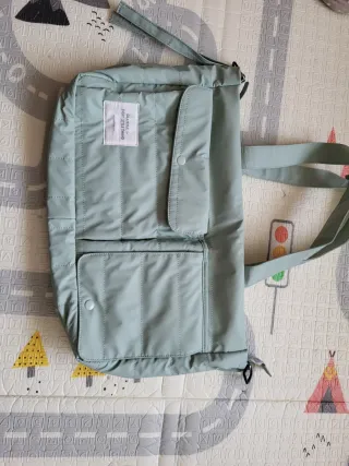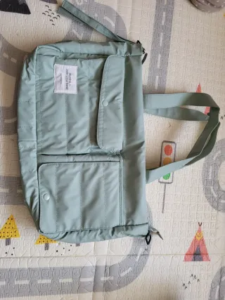 Usado un par de días. Bolso acolchado en color verde menta, ideal para llevar todo lo necesario para el bebé. - Diseño moderno y funcional. - Acolchado para mayor protección. - Cierre con botón a presión en bolsillo frontal.