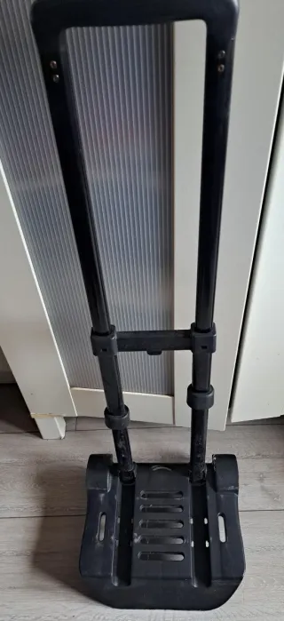 Carrito plegable para transportar mochilas o equipaje. - Estructura de metal y plástico. - Mango extensible. - Base ancha para mayor estabilidad.