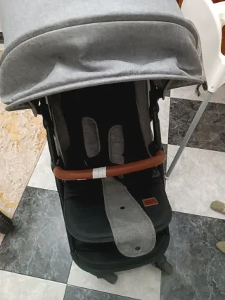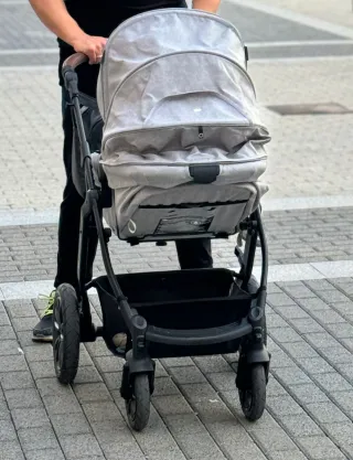 Carrito de bebé con un diseño moderno y funcional. - Asiento acolchado en color gris. - Arnés de seguridad de 5 puntos. - Capota protectora. - Cesta de almacenamiento inferior. - Usado en 2022/2023 - Tiene mosquitera, plástico de lluvia, sombrilla y esterilla de verano. - También tengo saco de invierno marca Betribe prácticamente nuevo ( ese irira aparte) - PRECIO NEGOCIABLE