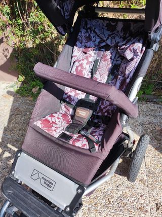 Carrito perfecto para running o pasear por la montaña con el niño. Lleva saco de invierno y capazo. De tres ruedas, la delantera puede bloquearse o ir libre. Puede plegarse y quitar las ruedas fácilmente.