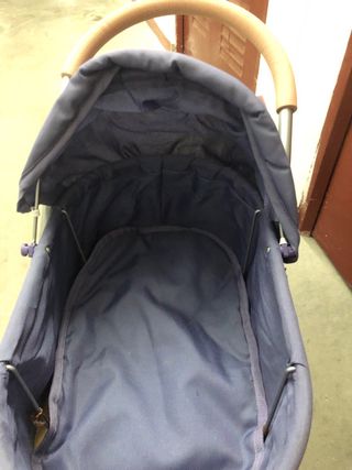Carrito de paseo de juguete. Se encuentra en buen estado, aunque presenta algunas pequeñas marcas de uso en la barra (se ve en la foto 2) Se puede plegar. Incluye bolso a juego. Nuevo cuesta cerca de 70€