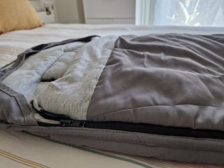 Se vende bolsa para carrito Bugaboo junto con guantes a juego. - Color gris jaspeado. - Incluye asa larga y asas cortas. - Cierre de solapa con botón magnético. - Bolsillo exterior. - Guantes forrados para el manillar.