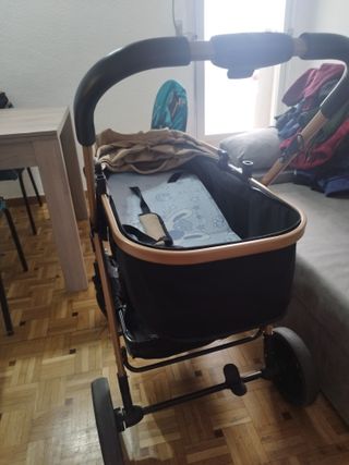 Carrito de bebé Jane muum. En tonos marrones y beige. Muy cómodo y ligero. - capota. -Arnés de seguridad. -barra delantera. -Ruedas desmontables. -sombrilla. - Plástico para la lluvia. -Manta para el carro valorada en 93 euros. -Guardado en sus cajas originales, con instrucciones. Sin ningún tipo de rotura reseñable ni contratiempo. Preguntar sin compromiso.