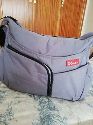Bolso marrón para carrito bebe.Marca Bebédue. Tiene corchetes para enganchar al carro y bandolera para llevar al hombro. Está compuesto por dos bolsos con cremallera y con gomas para sujetar y distribuir los objetos del bebé y un bolso lateral. Está en buen estado,como nuevo. Material: poliéster 100% .Medidas 30x38x15