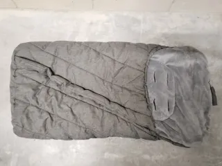 Saco universal para silla de paseo en color gris. Marca Fundas Barcelona Mantiene al bebé abrigado y cómodo. Fácil colocación con aperturas para los arneses. Algodón suave. Plegable con el carrito - Aberturas para el arnés. - Cierre con cremallera.