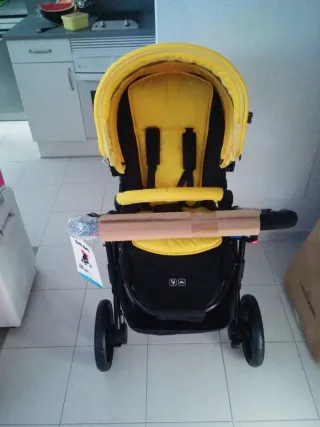 Carrito de bebé en color amarillo y negro. Diseño moderno y funcional. - Capota extensible. - Arnés de seguridad de 5 puntos. - Barra frontal acolchada. - Amplia cesta de almacenamiento. El precio puede ser algo negociable. No hago envíos.