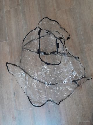 Protector de plástico transparente para carrito de bebé. Mantiene al bebé seco y protegido de la lluvia y el viento. - Material: Plástico transparente. - Borde: Negro.