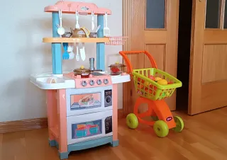 Cocinita y carrito de la compra de juguete