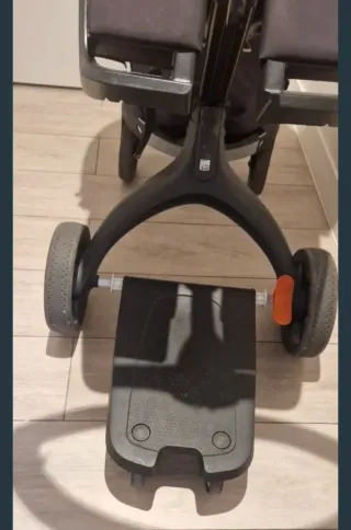 Accesorio universal para añadir un patín a tu carrito de bebé. Permite que un niño mayor viaje de pie cómodamente. - Diseño robusto y adaptable. - Fácil de instalar y quitar. - Ruedas para un desplazamiento suave. Muy bien cuidado, casi nuevo