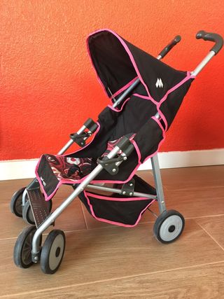 Carrito de muñecas en color rosa, ideal para juegos. - Estructura de metal. - Capazo con capota. - Cesta inferior. - Ruedas resistentes. Plegable, usado pero en condiciones aceptables.