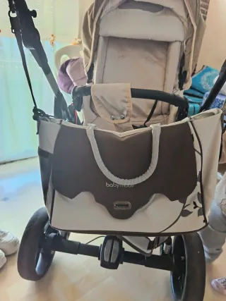 Carrito de bebé versátil que incluye capazo, silla, y bolso. Tiene unos años, pero es perfectamente funcional. - Capazo para los primeros meses. - Silla de paseo adaptable. - Bolso para el manillar. - Marca: Cam.