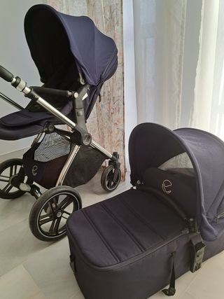 Carrito Cybex ePriam, en muy buen estado y muy cuidado. Incluye todo lo necesario desde el nacimiento hasta la etapa toddler: ✅ Capazo original ✅ Silla de paseo original ✅ Protector de lluvia original para capazo y silla ✅ Mosquitera original para capazo ✅ Forro de verano original gris para la silla Todo original de la marca, limpio, en nuy buen estado y cuidado. Diseño premium, robusto, elegante y con sistema eléctrico de asistencia al empuje. Incluye cargador
