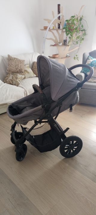 Carrito de bebé Kinderkraft en color gris. - Incluye capazo, silla de paseo y silla de coche. - Estructura ligera y plegable. - Ruedas todoterreno. -Accesorios completo aunque no todos están incluidos en las imágenes. -Falta una rueda que se puede adquirir online.
