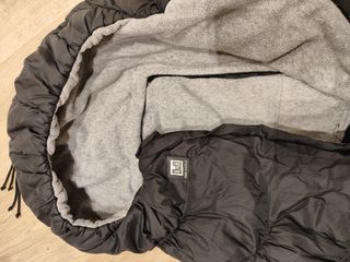 Saco polar de la marca Red Castle, ideal para carritos de paseo. Su diseño acolchado y material polar ofrecen calidez. Tengo dos unidades. - Color gris claro. - Interior negro. - Etiqueta de la marca visible. - Ajuste tipo "momia" o hasta la día de más frío