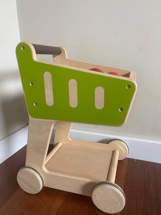 Carrito de compra de madera de la marca PlanToys. Ideal para juegos de imitación. - Fabricado en madera. - Diseño moderno y colorido. - Ruedas para facilitar el movimiento.