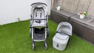- Carrito de bebé Jané Kawai - Capazo con capota ventilada y colchón anti plagiocefalia. - Sillita reversible con barra de seguridad que se abre desde los dos lados. - La capota de la silla también es ventilada, y los téxtiles se puede sacar completamente para lavar. - Todas las ruedas se desmontan y se puede plegar con la sillita puesta. -El capazo también se pliega para guardarlo - Hasta 22Kg - Comprado para el nacimiento de mi hijo en febrero del 2023 - Usado siempre con funda - Textil reparado profesionalmente (ver última foto) - Por 50€ más añado el Maxi-Cosi compatible (pedir fotos)