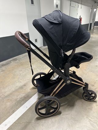 Vendo carrito de bebé Cybex Mios en buen estado. Es ligero y fácil de manejar. - Chasis dorado. - Capota negra. - Asa de cuero marrón.