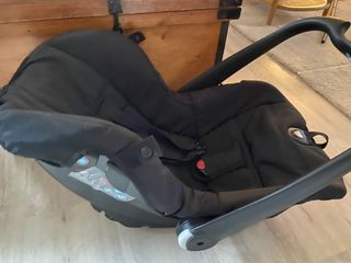 Silla de coche para bebé del grupo 0+. Está en buen estado, la hemos usado poco. La recomiendo como Segunda Silla para uso casual (coche abuelos, taxis, etc) porque es muy portable y básica. Se sujeta con el cinturón. Hasta 13kg. - Color negro. - Arnés de seguridad. Marca Mutsy. Era la del carrito pero a mi hijo se le ha quedado ya pequeña.