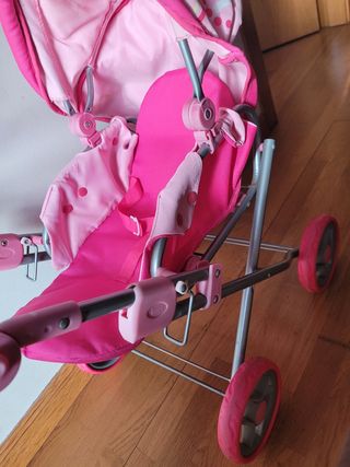 Carrito y silla de muñecas rosa