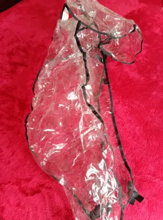 Funda de plástico transparente para proteger el carrito de la lluvia y el viento. Se ajusta fácilmente. - Material: Plástico transparente. - Ribete: Negro. Es UNIVERSAL. Sin ventana delantera y fácil de usar. Ideal para este tiempo