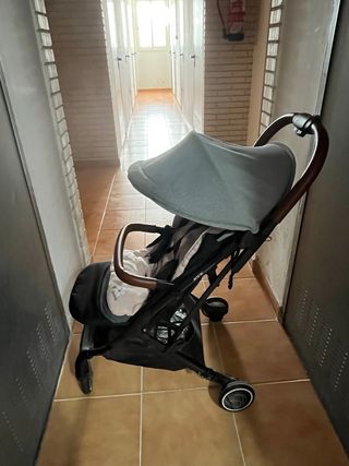 Carrito de bebé compacto y ligero, ideal para viajes y para llevar en cabina de avión. - Diseño moderno y funcional. - Capota extensible. - Empuñadura ergonómica.