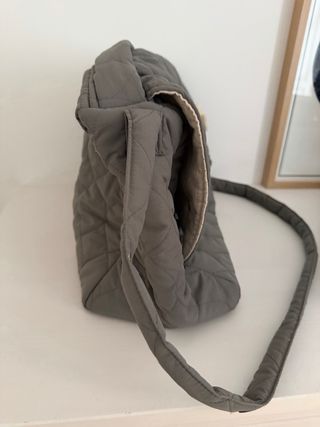 Bolso de la marca Arrue, diseñado para cochecitos. - Diseño acolchado. - Acabado en color beige. -tela de fuera impermeable