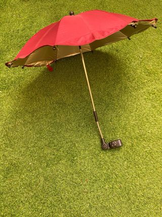 Preciosa sombrilla para carrito de bebé, prácticamente nueva. Es de color azul claro y tiene un diseño universal, por lo que se adapta a la mayoría de los carritos. - Ideal para proteger al bebé del sol. - Fácil de instalar y usar. - En perfecto estado.