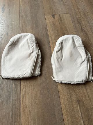 Manoplas de tejido suave para proteger las manos del frío mientras paseas con el carrito. - Color beige. - Forro interior de pelo. - Cierre con cremallera.