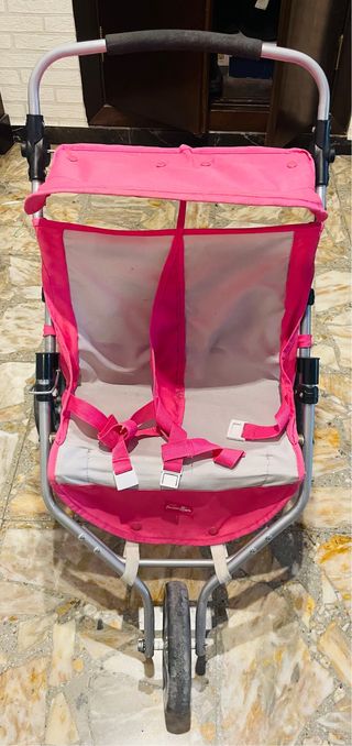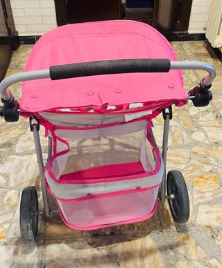 Carrito gemelar para muñecas de la marca Juguettos. Ideal para jugar. - Estructura metálica. - Asientos acolchados. - Arnés de seguridad.