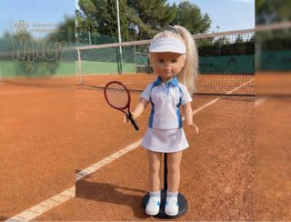 Conjunto de accesorios para la muñeca Nancy, ideal para jugar al tenis. - Incluye 2 raquetas de tenis. -1 pelota - Bolsa para guardar las raquetas y la pelota - Todo profesiol con un tacto muy bueno . 10€ el conjunto